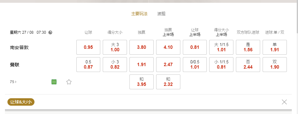 A盘/B盘/C盘/D盘赔率_退水比较图
